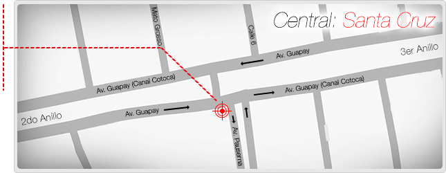 SANTA CRUZ Av. Guapay # 2460, Esquina Av. Pauserna Entre 2do y 3er anillo Tel/Fax 347-5460 77319046 |